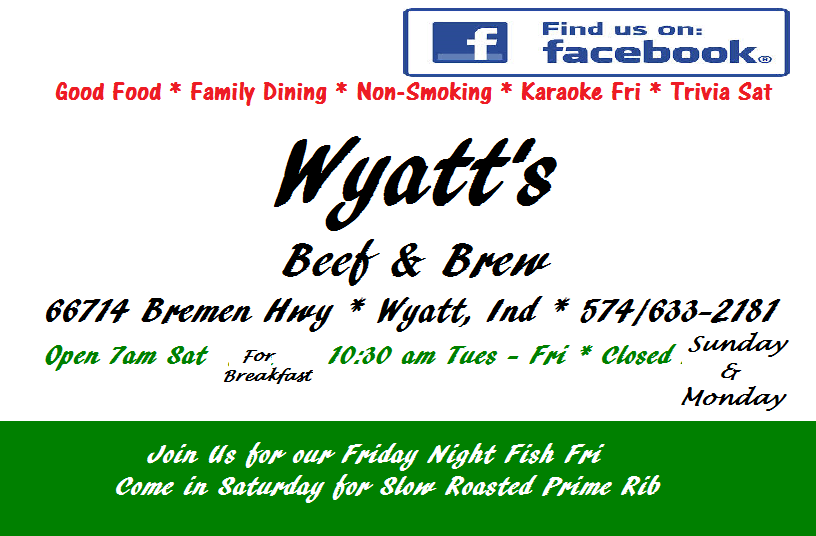 Welcome to Wyatt's Beef & Brew, a hidden gem located at 66714 IN-331, Bremen, IN. This inviting eatery specializes in mouth-watering burgers and delectable chicken wings, but their menu offers far more than just those staples. Signature dishes include succulent Meatloaf and a satisfying Shrimp Dinner, both priced reasonably at $10. Meat lovers can relish the Brisket ($13) and Burnt Ends ($10), expertly prepared to tantalize your taste buds.